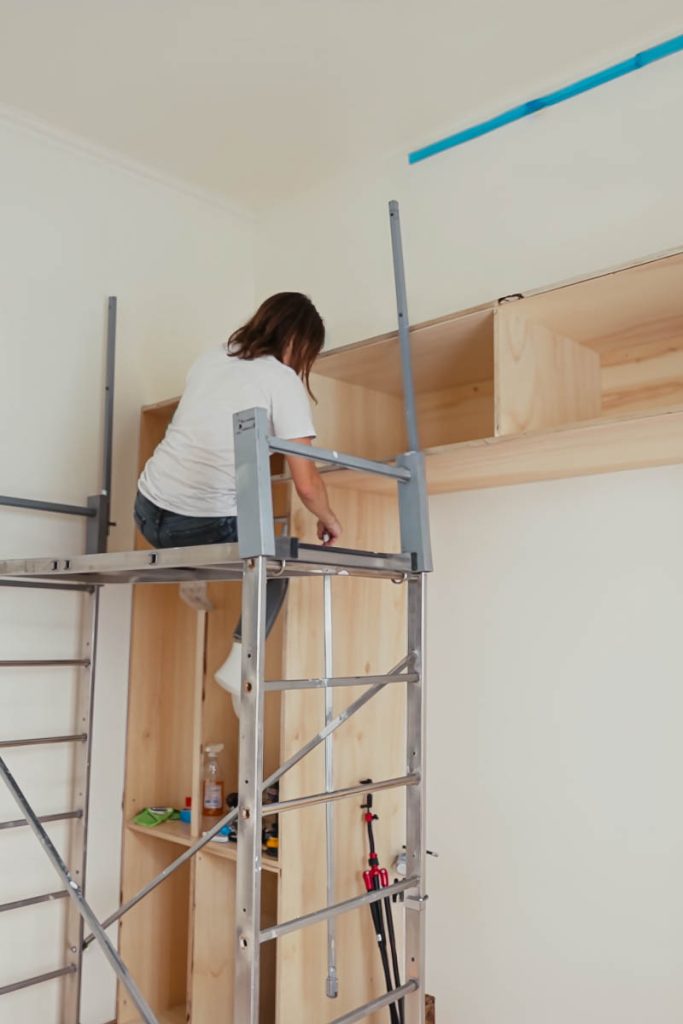 Step one: building the wardrobe structure. Hugo took this one on (no surprise there!), and it turned into quite the project. Let us know if you’d be interested in him sharing his furniture plans – in case you fancy recreating them yourself.
