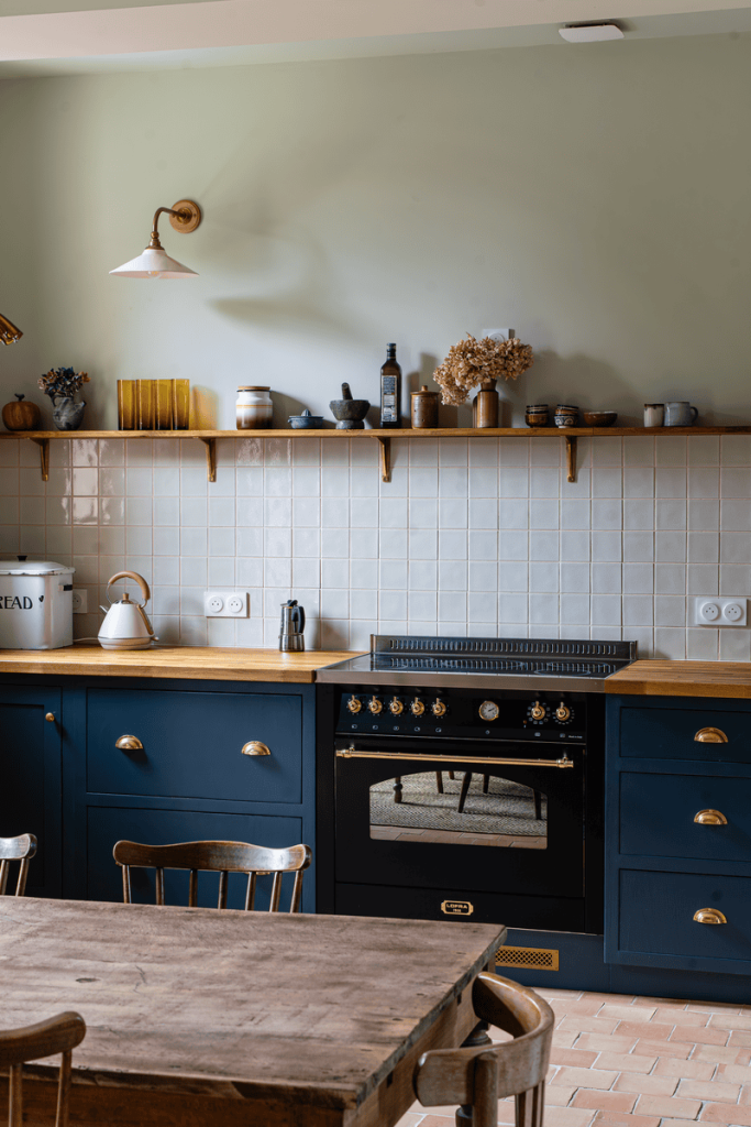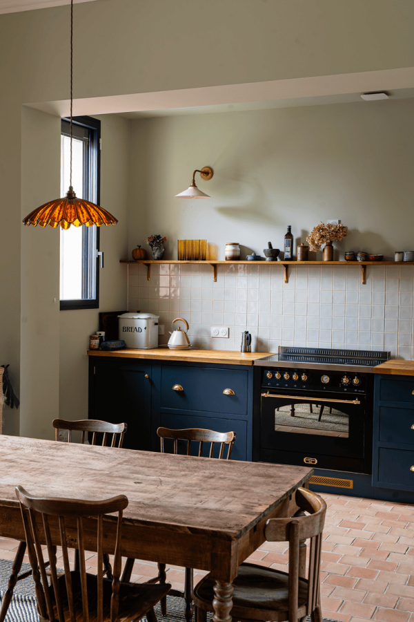 For the kitchen floor, we chose terracotta tiles, a material that feels absolutely right in a French home of this period. Terracotta has been used in buildings across the south of France for centuries, and there is a warmth and earthiness to it that no other flooring material can quite match. We sourced untreated terracotta tiles for that lovely raw, rustic appearance and laid every single tile ourselves. The laying process was labour-intensive but straightforward, and the satisfaction of seeing the floor come together tile by tile was immense.