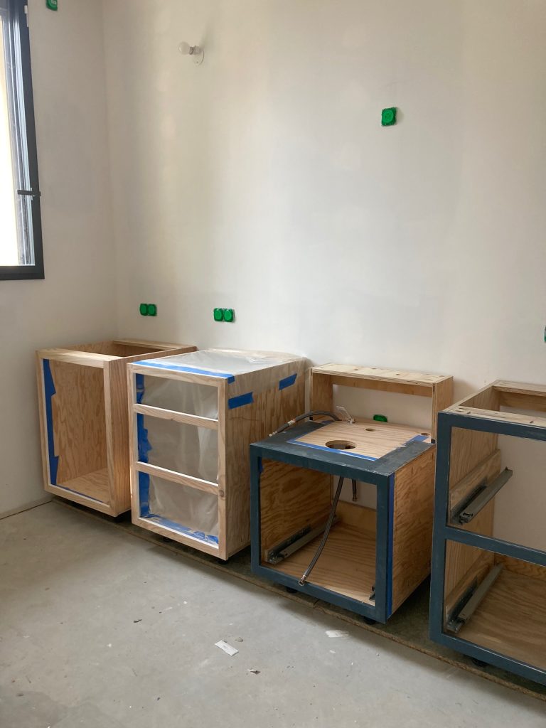 So we did what we have done throughout this renovation: we decided to build it ourselves. Hugo, who had never made a piece of furniture in his life before this project, took on the challenge of building every single kitchen cabinet from scratch. He researched construction techniques, invested in a few key woodworking tools, and taught himself as he went. The learning curve was steep, and there were moments of frustration, but the results speak for themselves. The cabinets are solid, beautifully proportioned, and look remarkably similar to the deVOL designs that inspired them.
