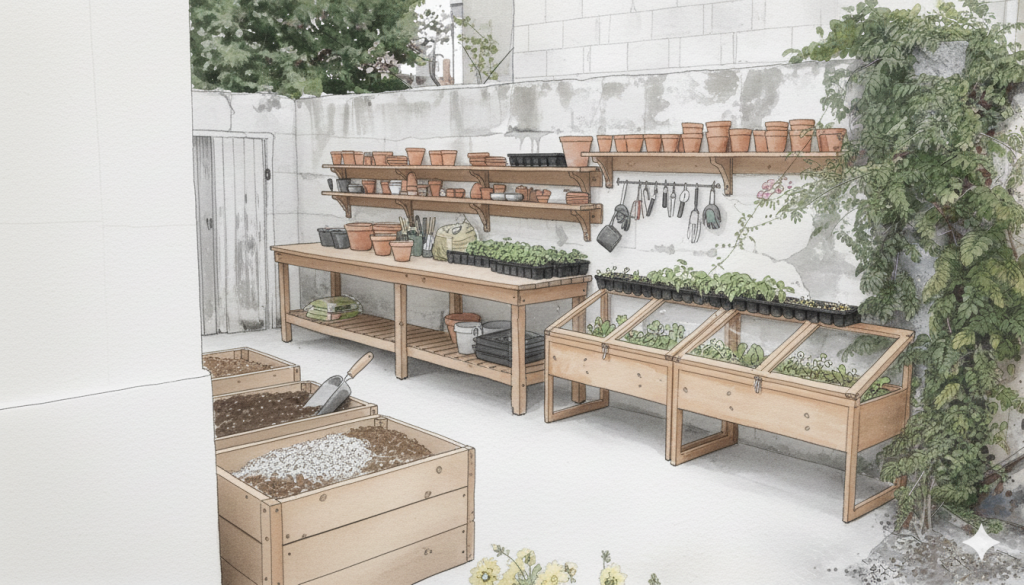 Next on the list: sowing grass to properly green up the space, and I’m dreaming about adding a potting table at the back — a small touch that will make gardening here even more enjoyable.