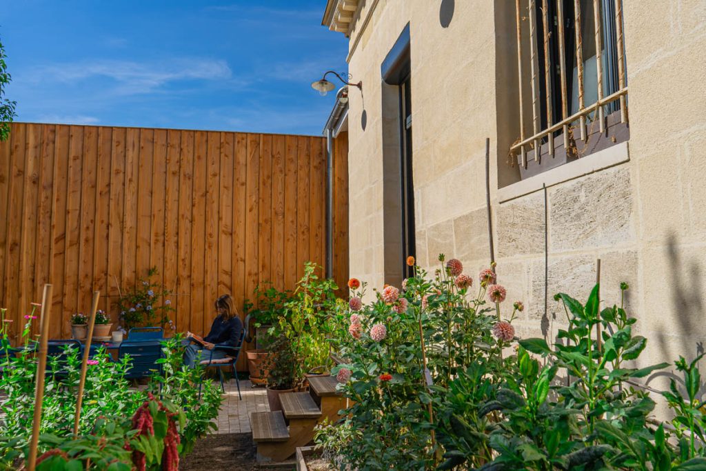 This is where the real transformation has happened. What was once a bit of a dumping ground is now starting to feel like an actual garden. First, we cleared away all the rubble and then added wood cladding along the back to hide a rather unattractive wall. That simple change has really helped frame the space and make it feel more intentional.